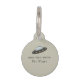 Een grappig label met een groene buitenaardse. Om het te identificeren, komt het op de rug met naam, telefoonaantal en een vliegende schotel! Zo kunnen vreemdelingen je huisdier terugbrengen.