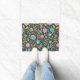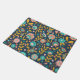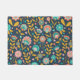 Dit folkkunstontwerp is voorzien van een roze, oranje en blauwgroen bloempatroon op een donkerblauwe achtergrond.