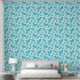 Deze folk art stijl vogels en bloemmotief in blauwgroen en wit.