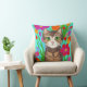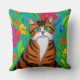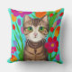 Folk Art Whimsical Style Kat en Bloemen Kussen