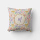 Folk floral boho patroon met Monogram Sierkussen. Persoonlijk worpkussen met bloemmotief in retro bohemien stijl voor huisdecoratie. Boho patroon met volksbloemen.