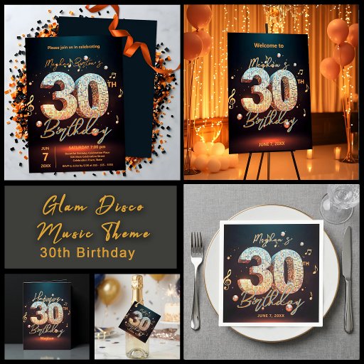 Glam Disco Ball Music Theme 30th Birthday PartyOntworpen door Kristina Lj Petrovska