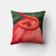 Kussen, foto van een rode bloem met groene achtergrond. Titel: « Tortillon », Montréal, Québec, Canada. Marie-Ève LaBadie fotografe