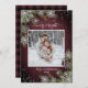 Op basis van mijn best verkopende Winter Wedding Invitation Suite, kenmerkt deze warme, cozy burgundy wood design foto-kerstkaart 'smakelijk & helder' in hand lettered schrift, je favoriete trouwfoto, en is gedecoreerd met zilveren glittersneeuwvlokken en waterverf-pijnboomtakken, en een woeste en zwarte gebuffelvormige vlecht. Personaliseer uw foto, naam en jaar. Neem contact op met ontwerper voor overeenkomende producten of ontwerpvariaties en uitzicht de Vakantiesuite op: https://www.zazzle.com/collections/rustic_burgundy_silver_winter_plaid_wood_christmas-119954909896873769 Copyright Anastasia Surridge voor Elegant Invites, alle rechten voorbehouden.