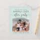 Begrotingsvriendelijke munt groen, behalve de datum die is aangekondigd voor een trouwreceptie of -feest na uw huwelijksreis of privé-bruiloft. De voorzijde kenmerkt uw foto van de trouwdag en "sparen de Datum voor Onze Gelukkig Ooit na Partij"in eenvoudige typografie en een kalligrafiemanuscript met swashes. Voeg uw voornamen en ontvangstdatum toe. Voor de omgekeerde kant, personaliseer uw aankondiging en voeg de partij of de ontvangst sparen de datumdetails toe en voeg uw namen in een handtekening-als manuscript toe.
