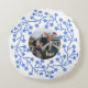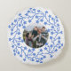 Voeg je eigen foto toe aan dit blauwe en witte moderne Scandinavische feestelijke krans vakantieontwerp. Maakt een mooie familie aandenken. Foto: Fotografie © Storytree Studios, Stanford, CA