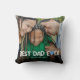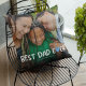 Moderne afbeelding kussen van het gezin met een volledige foto die je kunt vervangen door je eigen, het schattige gezegde "beste vader ooit" met een blauw hart in het typografische ontwerp, en de namen van wie het is.