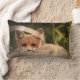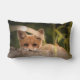 Een lumbale kussen met een donkere foto met een kleine oranje vos die je van achter een uitloging in de wildernis pikt.