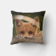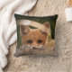 Een kussen met een donkere foto met een kleine oranje vos die je van achter een uitloging in de wildernis pikt.