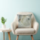 Een kussen met een serene foto met een mooi wit paard met een kleine vogel op zijn nek. Een magische wintersneeuwval geeft het afbeelding een prachtige mystieke kwaliteit.
