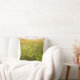 Deze mossy, groene kussen zijn ontworpen door Kaz Foxsen. Het ziet eruit als een miniatuurbos en kenmerkt een Japans esperbladblad op de achtergrond. Foto gemaakt in Japan.