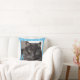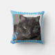 Turkooisstripe kattenfotokussen. Vervang de foto door je eigen foto en voeg je monogram toe.
