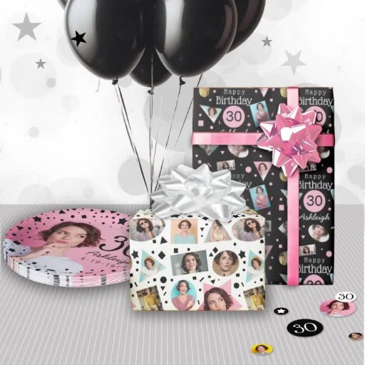 Pink Black White Confetti Photos 30th BirthdayOntworpen door Mindy Pierce