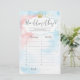 Zeer modern nieuw spel: 'Raad de leeftijd van mama en papa in Foto's'. Maak je baby shower heel gedenkwaardig. Deze baby shower gamekaart is voorzien van een modern script op roze en blauwe achtergrond van de waterverf, ideaal voor een geslacht dat feestjes laat zien!