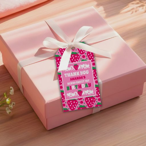 Bedank uw gasten in zoete stijl met de Fotomelding voor eerste verjaardagsfeest met aardbei-thema. Met het charmante “Berry Sweet First Birthday”-ontwerp kunt u een foto van uw kind toevoegen voor een hartelijke en persoonlijke touch. Ideaal voor het afronden van uw aardbei-thema eerste verjaardagsfeest.