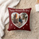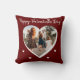 Burgundy Red Valentijn's day Heart Family Foto Script Pillow. De achterkant heeft een wit hart op een rode achtergrond met een kruit. Voeg uw foto en tekst toe.