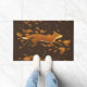 Een mooie vos loopt door een gouden liter omvallende herfstbladeren. Door Paxdomino