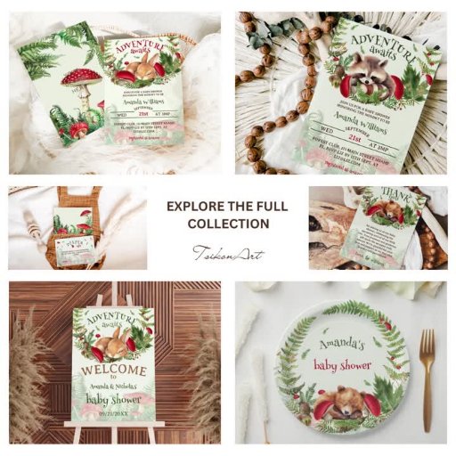 "Adventure Awaits" thema baby shower invite beschikt over een slaperige baby vos genesteld in een weelderige botanische groene krans, omgeven door varens en grillige rode paddenstoelen. Genderneutraal en betoverend, het vat de schoonheid van de omhelzing van natuur voor uw baby shower viering. Vergeet niet om het volledige collectie te ontdekken.