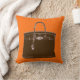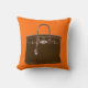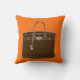 Deze kussen hebben een origineel gouache/acryl/inkt schilderij van kunstenaar Anne Harwell van een mooie klassieke franse tas in bruin met een oranje achtergrond. Het ontwerp staat zowel voor als achter.