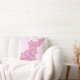 Met handgetekende roze en gele frangipani bloemen op een roze achtergrond.