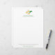 Frangipani 3 tropische witte bloemen en groen blad logo zakelijk briefhoofd. Bijpassende visitekaartjes ook beschikbaar. Bewerk dit briefhoofd met uw bedrijfsnaam en contactgegevens. Een unieke botanische waterverf plumeria schilderij en ontwerp van Sarah Trett voor www.mylittleeden.com