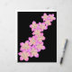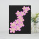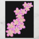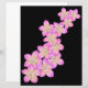 Met handgetekende roze en gele frangipani bloemen op een zwarte achtergrond.