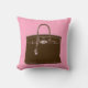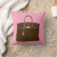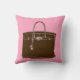 Deze kussen hebben een origineel gouache/acryl/inkt schilderij van kunstenaar Anne Harwell van een mooie klassieke franse tas in bruin met een roze achtergrond. Het ontwerp is zowel voor- als achterzijde voorzien.