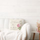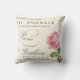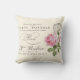 Een schattige shabby-chic franse inspirerende designer kussen met een oud beeld van een briefkaart en roze roze roos maken een stijlvolle aanvulling op je huis.© Julie McIver