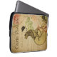 Een laptophoes met een replica van een floraal Frans briefkaart met een kikker die fietst en roze rozen maakt een geweldig cadeau voor een minnaar.
