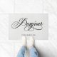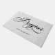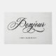 Dit Franse rustische en elegante doormat zegt "bonjour" in een zwetse, zwarte kalligrafie op een grijze, linen-achtergrond, en heeft een plek voor je familienaam.