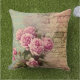 Frans land chic, shabby chic, roze rozen, flora buitenkussen