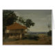 Een blanco wenskaart met het klassieke schilderij Braziliaans landschap met een arbeidershuis van de Nederlandse meester Frans Post.