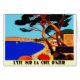 Franse en Europese reisadvertenties - strand, dorp, mensen, bomen, blauw zee en sky-illustratie