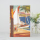 Speciale Europese reisreclame - strand, dorp, mensen, palmbomen, blauw zee en hemelbeeld
