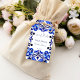 Blauw Majolica Mexicaanse Talavera Spaanse Franse Middellandse Zee tegels bruidsdouche gedrukte bedank sticker sjabloon. Moderne waterverf tegels in blauwe kleuren met modern lettertype gepersonaliseerde favor cadeau stickers