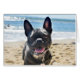 Een schattige Franse Bulldog op het strand