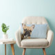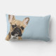 Gepersonaliseerde pop kunst franse bulldog kussens met een schattige rode bruine frenchie op een pastelblauwe achtergrond die kan worden gewijzigd in elke kleur.