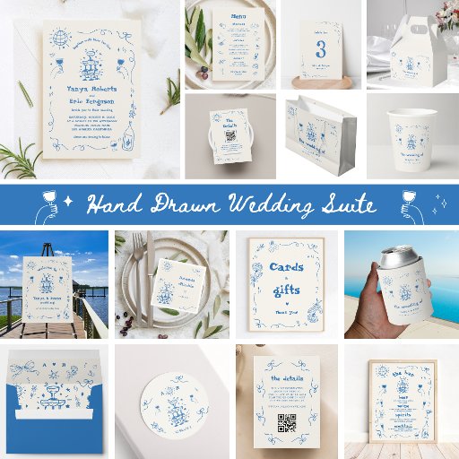 Zet de toon voor uw receptie met dit op Frankrijk geïnspireerde huwelijksmenu, met met de hand getekende grillige illustraties, speelse krabbels en elegante scriptlettertypen. Perfect voor een romantisch, creatief feest, dit ontwerp bevat voorgerechten, voorgerechten en desserts met stijl. Volledig bewerkbare kleuren maken het gemakkelijk om uw thema te matchen voor een unieke, gepersonaliseerde touch.