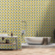 Mooie gele en blauwe bloemen bedekken dit behang. Helder en vrolijk, met een Franse landelijke uitstraling. Deze versie heeft bloemen in een naadloos, betegeld patroon.