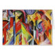 Dit dierlijke meesterwerk van het Cubisme, genaamd Stables, is gemaakt door de beroemde schilder, Franz Marc, met olie op het canvas in 1913. Hij was een oprichter van Der Blaue Reiter , een tijdschrift waarvan de naam later synoniem werd met de cirkel van kunstenaars die erin samenwerken.