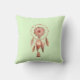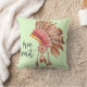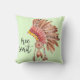 De voorzijde van dit decoratieve vierkant werpen kussen heeft een waterverf van een Inheemse Amerikaanse veertitel met de woorden Vrije Gedistilte in een manuscriptdoopvont. Het omgekeerde heeft een passende droomvanger. De achtergrond is het gespoelde zijde van de munt.