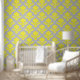 Intricate bright yellow flourishes on a soft light gray background. Perfect for adding classic European charm to accent walls, powder rooms, nurseries, or sophisticated event decor, this wallpaper offers a bold yet graceful statement. Its vintage textile pattern and modern color palette make it an ideal choice for those who love refined style with a contemporary twist.