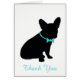 De Franse bulldog blanco bedankt je kaart.