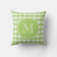 Een scherp appelgroen en wit gingham-stijlpatroon is de achtergrond van een groot initiaal van een monogram. Beide zijden zijn identiek, dus u hoeft het initiaal slechts eenmaal toe te voegen. Geweldig voor een zonnesteek of een woonkamer in het bijzonder.