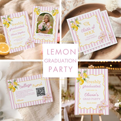 return addressfreshly graduatedlemon theme graduationcitrus graduation partylemon floralsummer graduation partywhimsical hand paintedwatercolor lemonspink stripesclass of 2026