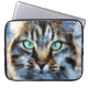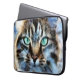 Deze laptophoes is voorzien van een scherp, painterachtig afbeelding van een tafelkat, het nieuwsgierige en vriendelijke Ms. Kat, met lichtgroene ogen.