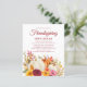 Friendsgiving / Thanksgiving diner open-house uitnodiging op budgetpapier. Vrolijke herfstbloemen en herfstbladeren met boho-waterverf pompoenen en scripttekst in feestelijke kleuren. Klik op Aanpassen om de tekst, kleuren of achtergrond te wijzigen.