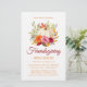 Een uitnodiging voor het avondeten/Thanksgiving-diner in het open huis over begrotingspapier. Cheerful herfst bloemen en white pomkin in waterverf boho motief met herfstbladeren en scripttekst in feestkleuren. Klik aanpassen om de tekst of achtergrondkleur te veranderen.