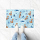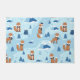 Charming red foxes in scarves wander a snowy blue forest of evergreens and mountains. Whimsical and wintery, perfect for cozy style.