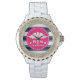 Fuchsia and Navy Stripe Caduceus RN Nurse Horloge
